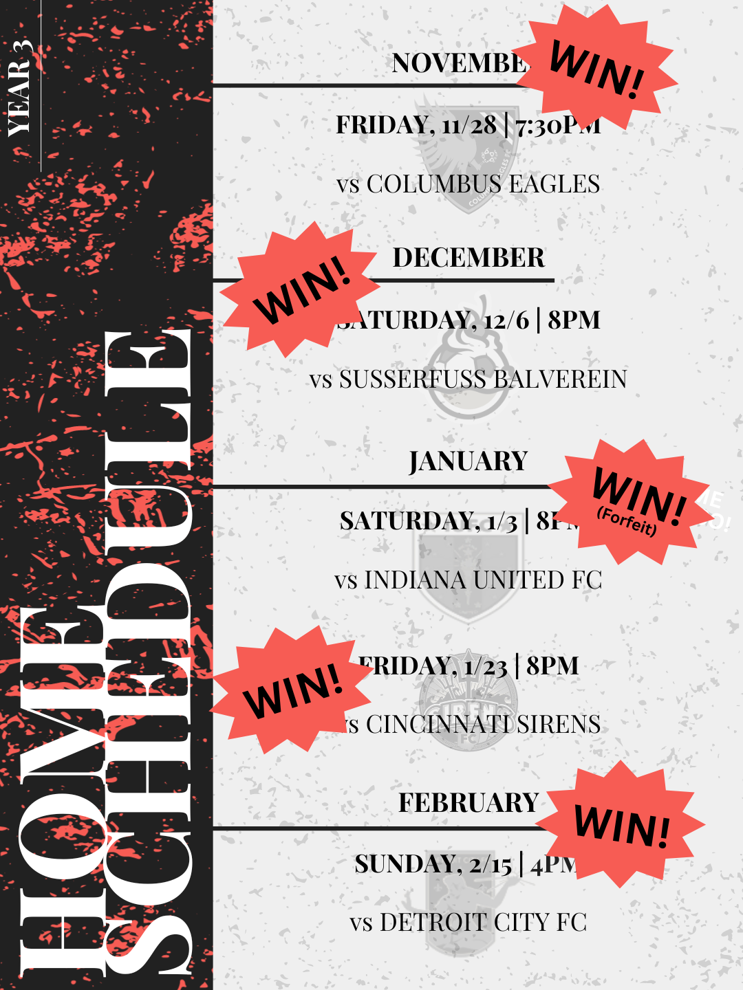 1.3.26 vs Indiana United FC | W 1-0 (forfeit)